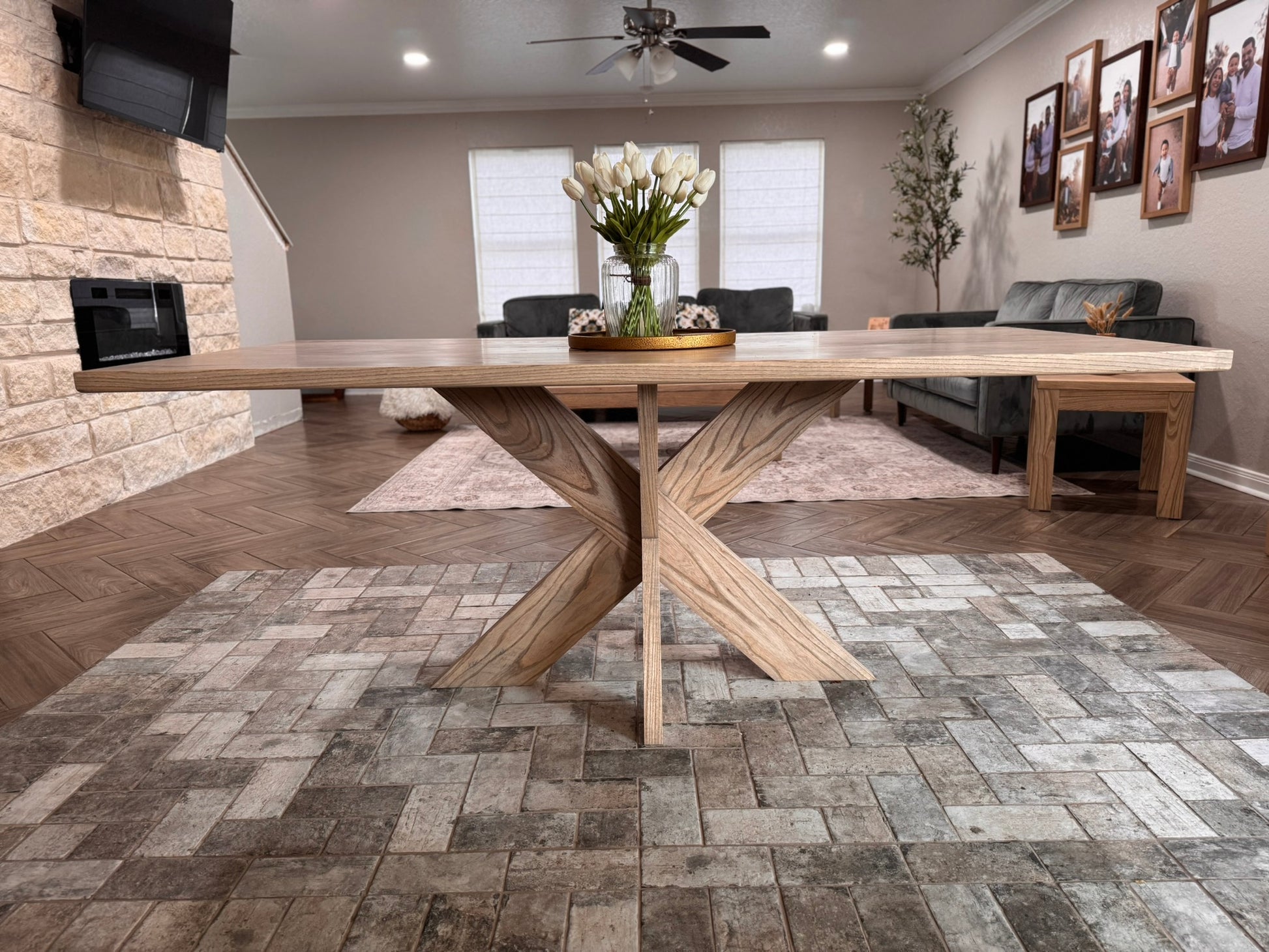 Rift-sawn white oak is prized for its clean, vertical grain and architectural look. This precision cut enhances the wood’s stability and gives your table a refined, modern finish. It’s ideal for elevated spaces that value detail and craftsmanship.